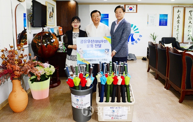 홍성군(군수 김석환)은 농업회사법인 ㈜한국흑홍삼(대표 이창원)의 우산 200개 제작·기증을 통해 관공서 방문 시 갑자기 비가 내릴 때 우산을 챙기지 못한 주민들에게 무료로 우산을 대여 해주는 서비스인‘공유(양심)우산 서비스’를 운영한다고 밝혔다. 저작권자 © 홍주일보 무단전재 및 재배포 금지 홍주일보 다른기사 보기 페이스북 카카오톡 URL복사 기사공유하기