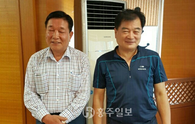 이날은 모처럼 극심한 가뭄 끝에 단비가 내리는 가운데에서도 홍주산우회장 이취임식에는 금마면민회산악회, 홍동향우회산악회, 홍북향우회산악회, 금당산악회 회원들을 주축으로 한 150여명의 회원들이 참석해 성황리에 거행됐다. 제6대 신두호(홍동·사진 왼쪽) 회장이 이임하고, 복문순(금마초 37회·사진 오른쪽) 전 재경금마면민회산악회장이 제7대 홍주산우회장으로 취임했다.