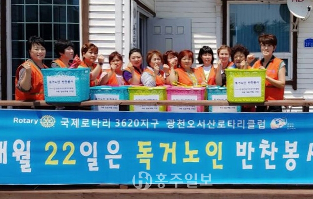 광천오서산로타리클럽은 매월 22일 독거노인들을 찾아가 손수 만든 반찬을 전달하고 있다.