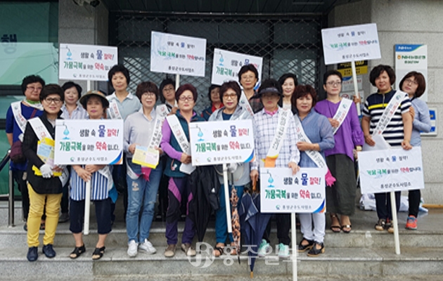 홍성군여성단체협의회(회장 전양숙)는 가뭄극복에 동참하기 위해 양성평등주간(1~7일)을 맞아 개최 예정이었던 2017년 홍성군 양성평등주간 기념행사를 무기한 연기하고 지난 1일, 홍성 큰 시장에서 ‘가뭄극복, 물 절약 캠페인’을 전개했다. 저작권자 © 홍주일보 무단전재 및 재배포 금지 홍주일보 다른기사 보기 페이스북 카카오톡 URL복사 기사공유하기