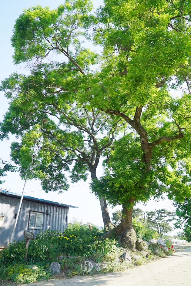 광천읍 매현리 산 94의 ‘회화나무’는 지정번호 8-12-235이며 수령이 520년, 나무둘레 7m, 수고 16m로 1982년 10월에 보호수로 지정됐다. 광천읍 매현리 자연보호회에서 관리하고 보호수인 회화나무는 더위가 기승을 부리는 한여름에 나비모양의 연노랑 꽃을 나무 가득히 피운다. 꽃은 가지 끝에 달리고 길이 15~30cm이고, 꽃 길이는 12~15mm로 황백색이며 꽃받침 길이는 3~4mm이고, 복모가 있다. 한국은 행운의 나무, 중국은 출세(出世)의 나무, 서양에서는 학자(學子)의 나무라고 소중히 여긴다.