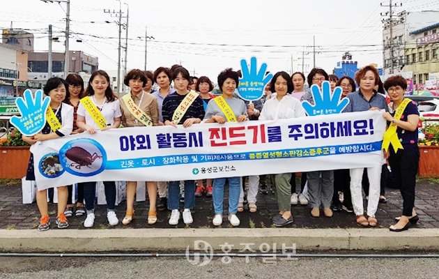 홍성군보건소에서 충남 지역 중증열성혈고판감소증후군(이하 SFTS) 감염 의심환자가 지속적으로 발생함에 따라 SFTS, 쯔쯔가무시 등 하절기 감염병 예방을 위해 지역주민을 대상으로 지난 7일 복개주차장에서 감염병 예방 캠페인을 실시했다.<사진>