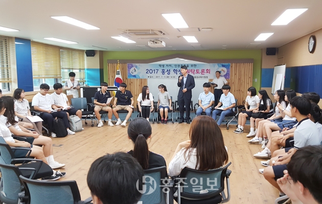 홍성교육지원청(교육장 고옥심)은 지난 11일 관내 중·고등학교 학생회 대표학생 38명을 대상으로 교육지청 중회의실에서 자치와 인권이 숨 쉬는 학교를 만들기 위한 2017 홍성 학생 원탁토론회를 개최했다고 밝혔다.<사진>