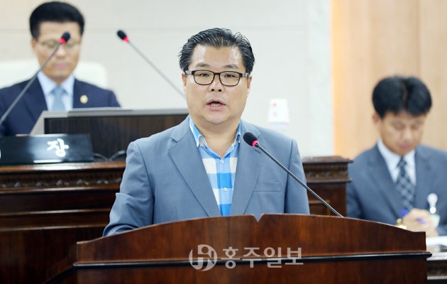 홍성군의회 김헌수 의원이 친환경 축산을 위해 EM수를 적극 활용할 것을 제안했다. 김 의원은 지난 제245회 홍성군의회 임시회에서 5분 자유발언을 통해 “EM수를 축산지역 전체에 수시로 살포하고 가축의 음용수로 활용해 깨끗하고 안전한 먹거리 생산으로 국민의 신뢰를 확보해야 한다”고 주장했다.<사진>