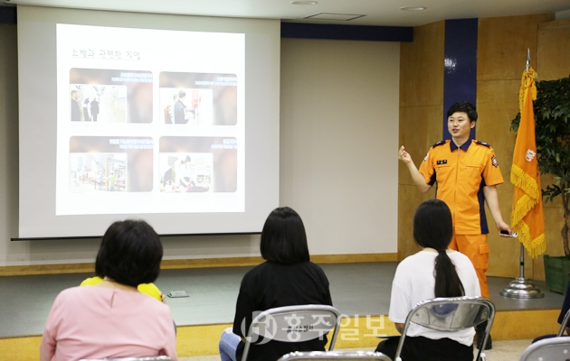 홍성소방서(서장 채수철)는 지난 17일 결성중학교 학생을 대상으로 소방관련학과 현황, 소방공무원 채용 과정과 업무 소개, 119신고요령과 응급처치 요령 등에 관련된 교육인 미래소방관 직업체험 교실을 운영했다고 밝혔다. 저작권자 © 홍주일보 무단전재 및 재배포 금지 홍주일보 다른기사 보기 페이스북 카카오톡 URL복사 기사공유하기