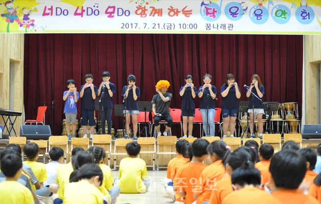 ‘너도 나도 모두 함께 하는 작은 음악회’에서는 오카리나, 리코더, 우쿨렐레, 피아노, 바이올린, 실로폰 등 다양한 악기를 활용해 그동안 연습해오던 실력을 무대에서 맘껏 펼치며 반 친구들과 함께 혹은 독주 무대를 가졌다. 음악회 소식을 듣고 구경을 온 병설유치원의 심채원 원아는 “언니들이 하는 것을 보니 자신도 오카리나 연주를 해보고 싶다”며 아쉬운 마음을 표하기도 했다.