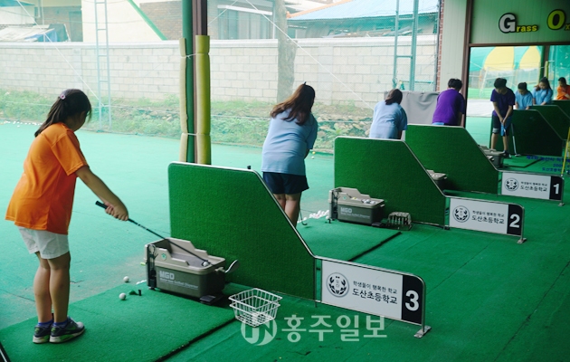 교문 입구의 운동장 한 귀퉁이에 자리하고 있는 골프 연습장의 경우, 용접기술자로 일하는 학부형 한 분이 직접 설계하고 선생님들과 함께 제작했다고 한다. 대부분의 학교는 이런 경우, 입찰을 거쳐 용역을 주는데 그렇게 하면 예산은 걷잡을 수 없이 불어나기 때문에 감당할 수 없는 일이다. 정해진 돈을 쪼개고 아껴서, 선생님과 학부모들이 직접 팔을 걷어붙이고서 일일이 마련한 시설이고 프로그램이어서 가치를 더한다. 산골의 벽지, 시골학교지만 아이들이 도시의 학생들에게 주눅 들지 말라고 굳이 골프, 승마 같은 고급스포츠를 선택했다는 설명이다.
