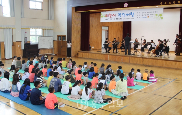 지난 21일 홍북초등학교 최영관에 한 개의 지휘봉(指揮棒)과 열 개의 현(絃)이 찾아왔다. 지휘봉이 자아내는 환상(喚想)에 관중들은 감상에 젖었다.
