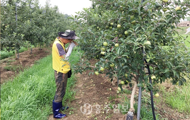 예산군은 고품질 사과 생산을 위해 지난 4월부터 오는 10월까지 사과 주산지역 40농가를 대상으로 병해충 예찰사업을 실시하고 있다고 밝혔다.