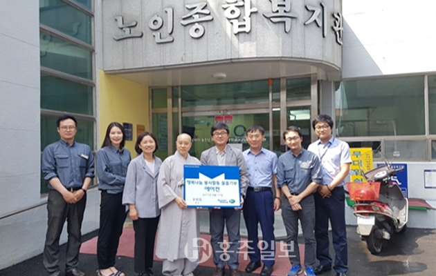 홍성군 현대오일뱅크(대표이사 문종박)는 직원들의 온정의 손길을 모아 지난 14일 홍성군노인종합복지관(관장 동준스님)에 200만원 상당의 에어컨과 ‘매칭그랜트 제도’를 통해 십시일반 모은 24만원 상당의 상품권을 기탁했다.<사진>