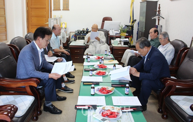 한용운 선사의 탄신 138주년을 맞아 만해한용운선사기념사업회가 옹산 기념사업회 이사장, 유환동 홍성문화원장 외 5명이 모여 추모다례 봉행, 향후 운영방안 등을 협의하기 위한 이사회가 지난 16일 홍성문화원에서 열렸다. 저작권자 © 홍주일보 무단전재 및 재배포 금지 홍주일보 다른기사 보기 페이스북 카카오톡 URL복사 기사공유하기