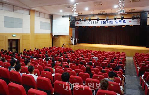 충남사회복지공동모금회(회장 이관형)는 지난 9일 호서대 천안캠퍼스와 10일 충남도청 문예회관에서 도내 사회복지기관 및 단체 사회복지사를 대상으로 우수사례 발표와 2018년 배분기준 및 공동모금회 사업안내 등‘2018 배분사업설명회’를 개최했다. 저작권자 © 홍주일보 무단전재 및 재배포 금지 홍주일보 다른기사 보기 페이스북 카카오톡 URL복사 기사공유하기