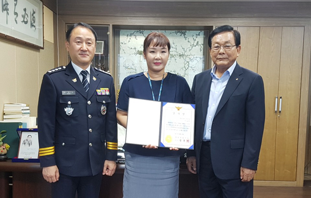 맹훈재 홍성경찰서장은 지난 16일 홍성농협을 방문, 최근 발생한 보이스피싱 사기사건에서 기지를 발휘해 피해를 예방한 홍성농협 오관지점 창구 직원 A씨에게 감사장을 수여했다.