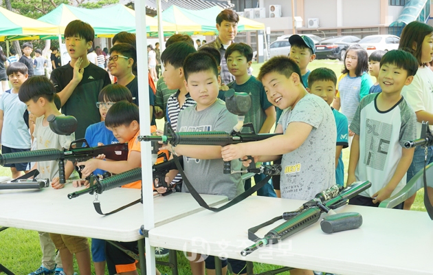 홍성교육지원청(교육장 고옥심)은 2017 을지연습 기간중인 23일부터 24일까지 홍성군 여하정 일원에서 1789부대와 연계한 안보체험 및 군장비 전시회에 참가했다.<사진>