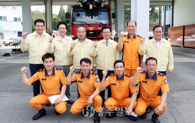 홍성군의회(의장 김덕배)는 22일 홍성군청, 홍성경찰서, 홍성소방서 등 유관기관 을지연습 훈련장 상황실을 방문해 훈련 상황을 참관하고 근무자를 격려했다.<사진>