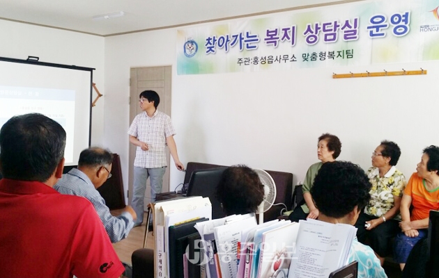홍성읍(읍장 장의남) 맞춤형복지팀은 지난달 24일 오관9리 경로당에서 복지사각지대 해소를 위해 ‘찾아가는 복지상담실’을 운영했다. 지난 5월 2일 처음으로 실시한 후 다섯 번째로 실시된 ‘찾아가는 복지상담실’은 지역 어르신들에게 큰 호응을 얻고 있다. 저작권자 © 홍주일보 무단전재 및 재배포 금지 홍주일보 다른기사 보기 페이스북 카카오톡 URL복사 기사공유하기