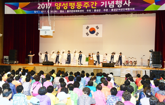 홍성군은 지난달 30일 오전 10시 홍주문화체육센터에서 양성평등 주간을 맞아 1000여명이 참여한 가운데 ‘화합행사’를 성황리에 마쳤다.<사진>