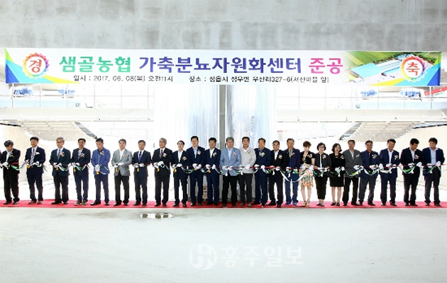 정읍지역 가축분뇨를 안정적으로 처리하는 가축분뇨 지역단위 통합관리센터가 정읍시 정우면 현지에 들어서 가동에 들어갔다. 정읍샘골농협(조합장 허수종)은 지난 6월 8일 조합의 숙원사업인 ‘가축분뇨자원화센터’ 준공식을 정읍시 정우면 우산리에서 갖고 본격적인 운영에 들어갔다.