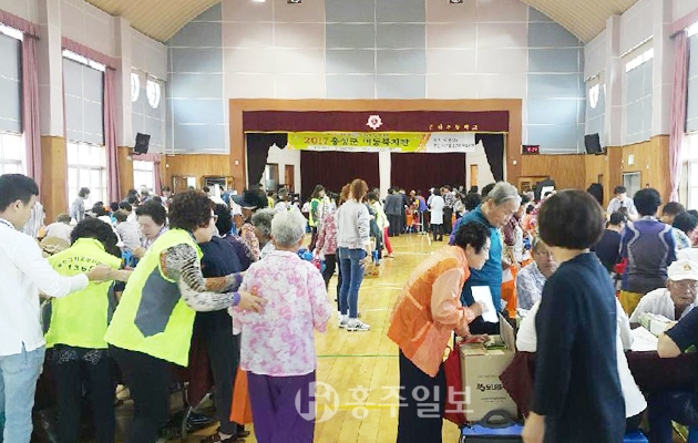 지역의 다양한 복지·의료·봉사 자원을 활용해 운영하는 2017 이동복지관이 지난달 31일 은하면에서 열렸다. 은하초등학교 강당에서 열린 이동복지관에는 600여명의 주민들이 각종 서비스 지원을 받았다.