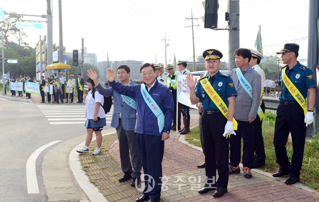 홍성군(군수 김석환)은 지난달 31일 덕산통사거리에서 홍성경찰서 및 홍성교육지원청, 그리고 교통협력 단체 (모범운전자 홍성군지회, 녹색어머니회) 등 80여명과 함께 합동으로 이동차량 및 보행자를 대상으로 하반기 교통사고 예방 홍보 캠페인을 실시했다. 저작권자 © 홍주일보 무단전재 및 재배포 금지 홍주일보 다른기사 보기 페이스북 카카오톡 URL복사 기사공유하기