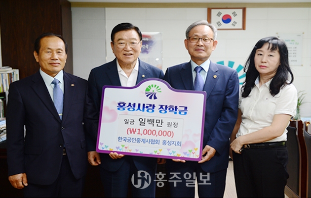 한국공인중개사협회 홍성군지회(지회장 이중구)는 지난 4일 지역 우수인재 육성을 위해 홍성사랑장학회에 100만원의 장학금을 기탁했다. 이중구 회장은 “내 고장 홍성의 발전을 위해 홍성사랑장학금을 기탁하게 돼서 뜻 깊다”라며 소감을 밝혔다. 저작권자 © 홍주일보 무단전재 및 재배포 금지 홍주일보 다른기사 보기 페이스북 카카오톡 URL복사 기사공유하기