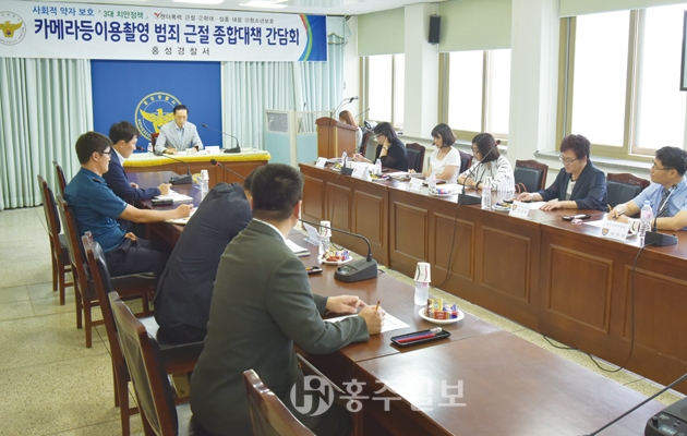 홍성경찰서는 4일 소회의실에서 홍성군청, 홍성교육지원청 등 관계자들이 참석한 가운데 카메라 등 이용촬영 범죄 근절 종합대책 관련 간담회를 개최했다. 경찰은 올 8월말까지 충남에서 85건, 그 중 홍성에서 6건의 불법촬영 범죄를 적발했다. 저작권자 © 홍주일보 무단전재 및 재배포 금지 홍주일보 다른기사 보기 페이스북 카카오톡 URL복사 기사공유하기