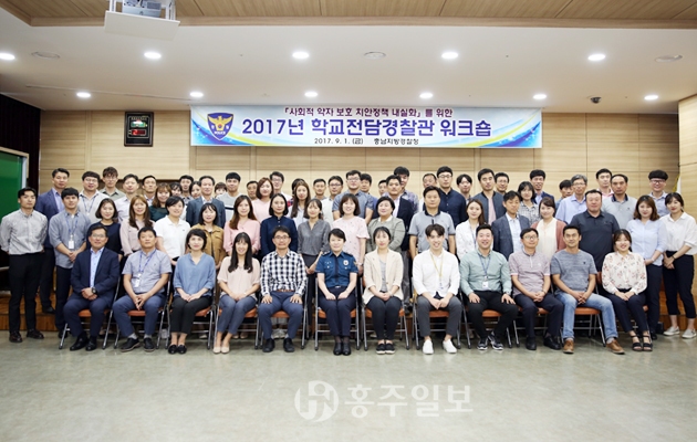충남지방경찰청(청장 김재원)은 지난 1일 오후 지방청 대회의실에서 2부장, 경찰서 여성청소년계장, 학교전담경찰관 등 90여명이 참석한 가운데 학교전담경찰관 역량 강화를 위한 워크숍을 개최하고 학기초 학교폭력 및 교내 성범죄 예방활동 등 사회적 약자 보호 치안정책 추진에 총력을 기울일 것을 다짐했다.