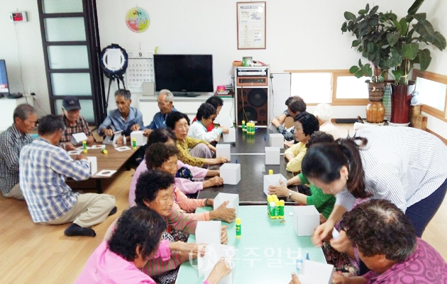 지난 11일 회원들이 다수 참석한 가운데 군 보건소에서 담당공무원들이 나와 혈압측정 및 건강에 대한 기본검사를 했다. 또한 두뇌건강에 큰 도움이 되는 부채, 액자, 그릇 만들기 등을 통해 손과 발을 움직여 실천하게 되면 치매예방에도 도움이 된다고 했다.