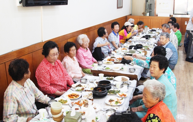 두드러진 주름살 얼굴이 노인회원으로 보였으나 청년회장으로 소개하는 정헌 씨에게 기자는 농담인 줄 알고 재차 물었다. 자신은 물론 주위에서도 진지한 표정으로 청년회장이라고 우겼다. 나이 62살, 노인회에 입회할 자격이 없고 진짜 젊은 청년들이 없어서 회장을 맡았단다. 청년회원은 20명 정도 된다고 했다. “마을에 대소사 다 챙기고 잔심부름 우리가 다 합니다.” 하기사 100살 이상 목표로 삼는 장수마을에서 60대 청년회장이 어색할 것도 없었다.