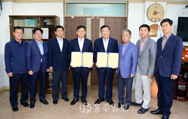 홍성군은 지난 7일 군수실에서 김석환 군수와 임재율 한국농어촌공사 홍성지사장과 농업용수 수질개선을 위한 협약을 맺었다. 군은 이번 협약을 통해 친환경 농업용수 공급 및 농촌용수 가치증진, 농업용 호소별 단계적 세부관리계획 수립 등을 기대하고 있다. 저작권자 © 홍주일보 무단전재 및 재배포 금지 홍주일보 다른기사 보기 페이스북 카카오톡 URL복사 기사공유하기
