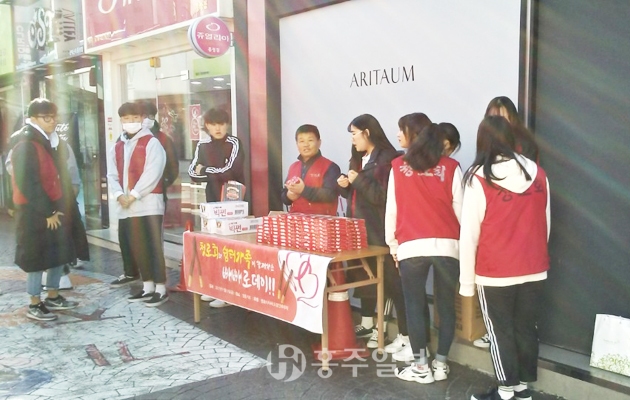 청로회 학생자원봉사단의 이주용(홍주고1) 학생은 “아주 보람있었다. 빼빼로를 받고 기뻐하는 학생들의 밝은 미소를 보니 내 기분도 좋아졌다. 나중에 이런 빼빼로 나눠주기와 같은 나눔을 실천하고 싶다”라고 말했다.