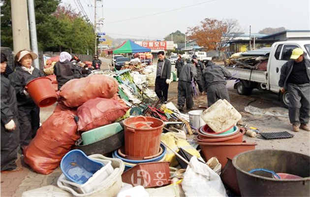 홍성읍(읍장 장의남)은 지난 9일 홍주의사총 옆 공터에서 홍성읍 남녀새마을지도자협의회원 60여 명이 모인 가운데 ‘2017년 하반기 숨은 자원 모으기’ 행사를 실시해 농어촌폐기물 및 재활용품을 수거 분류하는 작업으로 재활용품 약 17톤을 수거했다.