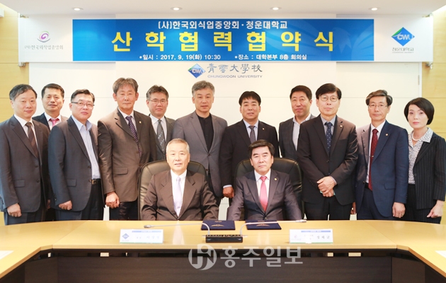 청운대학교(총장 이상렬)는 지난 19일 (사)한국외식업중앙회 경기도지회(지회장 정해균)와 청운대학교 대학본부 대회의실에서 인적·물적 교류를 통한 우수한 기술 인력의 양성 등을 골자로 한 산학협력 협약을 체결했다고 밝혔다.