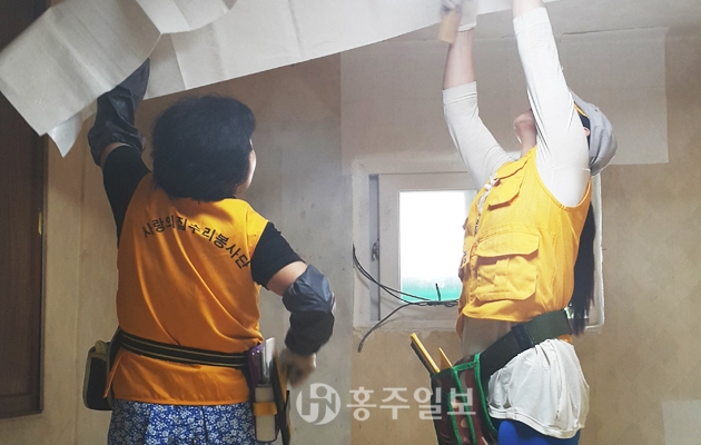광천읍지역사회보장협의체는 지난 19일 한국주거환경협회 사랑의집 봉사단과 광천읍 소재 독거노인과 장애인 2가정을 방문해 도배와 장판, 전등 교체 등 주거환경 개선 봉사를 전개했다.<사진>