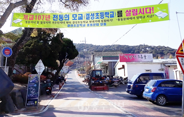 최근 결성면 소재지인 읍내리 마을 주요 길목에 이런 현수막이 내걸렸다. 면내 주민들의 이농과 저출산으로 인한 취학아동이 갈수록 줄어들면서 자칫하면 입학생이 없어 모교가 문을 닫을지도 모른다는 위기감에 결성초등학교 총동문회가 적극 호소하고 나섰다.