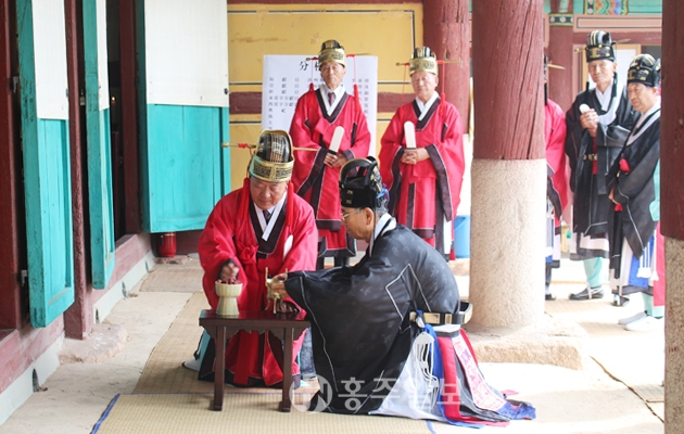 홍주향교 추계석전 대제가 지난 27일 홍성읍 대교리에 위치한 홍주향교에서 유림회원 30여 명이 참석한 가운데 열렸다.<사진>