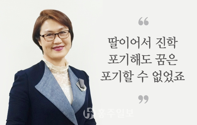 “방송통신대학은 출석수업을 해야 하는데 교육청에 근무하면서 공부하기가 어려웠습니다. 2년 4회의 출석수업을 해야만 했는데 과장님이 학교가는 것을 싫어했습니다. 저는 낮에 통신대 수업에 가고 밤에는 쌓인 일을 하겠다고 했습니다. 하지만 길게 가기는 힘들다는 판단이 들었습니다.”
