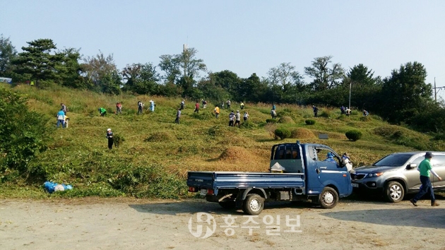 광천읍이장협의회(회장 이경열)는 한가위를 일주일 가량 앞둔 지난 26일 광천 광신초등학교 뒤편 아차산 기슭 공동묘지에 안치된 무연고 묘지를 벌초했다.