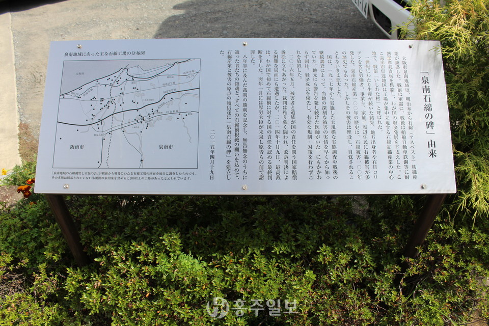 일본 오사카 센난과 한난지역 석면피해의 상징돼 ‘센난 석면의 비’