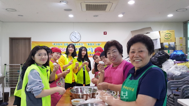 홍성군자원봉사광천읍거점센터(상담가 이난영)는 지난달 30일 광천읍행정복지센터에서 한국청소년복지문화원 충남본부 가족봉사단 10여명과 광천읍 봉사단체 회원들과 함께‘추석맞이 독거어르신을 위한 송편만들어 전달하기’ 행사를 개최했다. 저작권자 © 홍주일보 무단전재 및 재배포 금지 홍주일보 다른기사 보기 페이스북 카카오톡 URL복사 기사공유하기