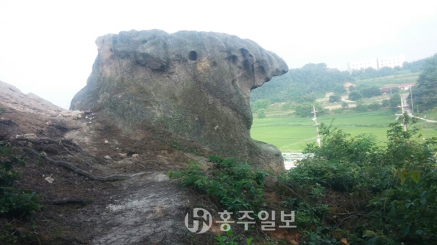 성읍 내법리 법수마을에 위치한 구메바위가 주택개발로 심하게 훼손돼 주민들이 반발하고 있다.