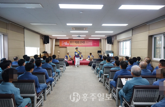 홍성교도소(소장 민육기)는 문화의 달 10월을 맞아 지난 23일 홍성교도소 강당에서 수용자 문화공연을 개최했다. ‘2017 신나는 예술여행 사업’의 일환으로 ‘프로젝트 공연만들기 팀’(대표 김산)을 초청, 악기 및 톱 연주 등 다채로운 공연을 실시했다. 저작권자 © 홍주일보 무단전재 및 재배포 금지 홍주일보 다른기사 보기 페이스북 카카오톡 URL복사 기사공유하기