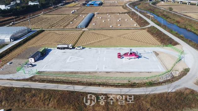 충청남도와 도내 시ㆍ군이 공동 임차 사용하는 산불진화 헬리콥터는 2003년부터 이용한 기존 홍성하수처리장 내의 헬리콥터 계류장이 하수처리장 확장 계획에 의해 내년부터 이용이 불가능해짐에 따라 신속한 산불 진화를 위해 헬기계류장을 확장 신설하게 된 것이다. 특히 응급환자 발생 시 신속한 이송을 위한 닥터헬기 착륙장과 연계 설치하여 예산절감은 물론 재산의 효율적 활용에 크게 기여했다는 평이다.
