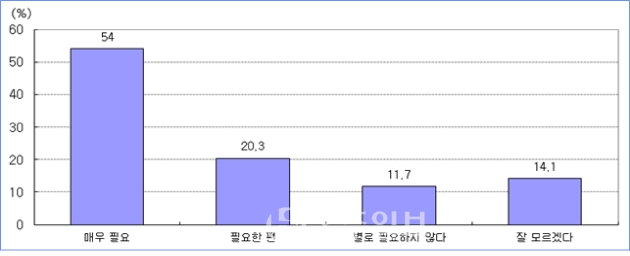 축산악취를 줄이기 위해 가축분뇨자원화 시설의 설치 필요성에 대해 묻는 질문에는 74.3%에 이르는 주민들이 ‘매우 필요하다’(54.0%)거나 ‘필요한 편’(20.3%)이라고 답했고, 내포신도시 주민 73.9%와 홍성군주민 74.3%가 ‘필요하거나 매우 필요하다’고 답한 것으로 나타났다.