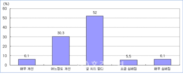 주민들 52% 지난해와 ‘별 차이 없다’ 30.3% ‘어느 정도 개선됐다’