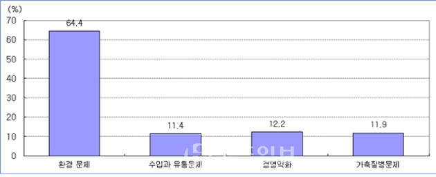 홍성군 축산업이 직면한 가장 큰 문제 64.4% ‘환경문제인 악취다’
