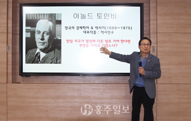 충남인성교육원(원장 이병학)은 지난달 5일 결성면을 시작으로 ‘찾아가는 마을사랑 효(HYO)토크쇼’를 홍성군 내 읍·면을 순회하며 실시하고 있다. 지난 5일 홍성읍에서 실시한 효토크쇼에서 이승원 교육국장이 열강하고 있다. 저작권자 © 홍주일보 무단전재 및 재배포 금지 홍주일보 다른기사 보기 페이스북 카카오톡 URL복사 기사공유하기