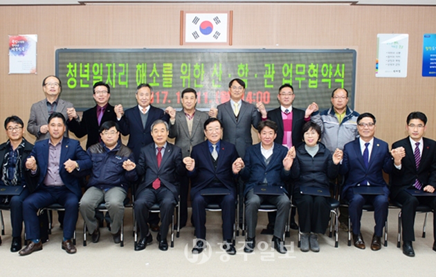 홍성군은 지난 11일 군청 회의실에서 일자리 및 취업정보 교류를 통한 안정적인 인력채용과 기업 경쟁력 제고를 위해 우송정보대학과 군내 10개 기업체와 상호 업무협약을 체결했다.<사진>