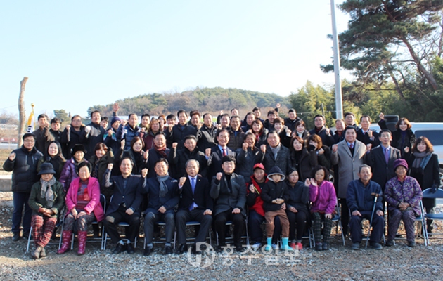 결성면 형산리에 사는 김장섭 씨(36)에게 사랑의 집을 지어줄 착공식이 열려 추운 연말 훈훈한 기대감이 전해졌다. (사)나눔에버클럽은 서부면에 1호집, 금마면 2호집, 구항면 3호집에 이어 사랑 나눔 4호집 착공식을 지난 9일 결성면 형산리에서 진행했다.<사진>