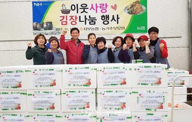서부농업협동조합(조합장 표경덕)과 농가주부모임(회장 손명숙)은 지난 18일부터 2일간 서부농협 육묘장에서 직접 담근 20kg 포장김치 50박스를 관내 34개 마을회관 및 경로당과 홀몸어르신 가정 등에 전달하는 사랑의 김장김치 나눔 행사를 실시해 이웃사랑의 정을 나누었다. 저작권자 © 홍주일보 무단전재 및 재배포 금지 홍주일보 다른기사 보기 페이스북 카카오톡 URL복사 기사공유하기